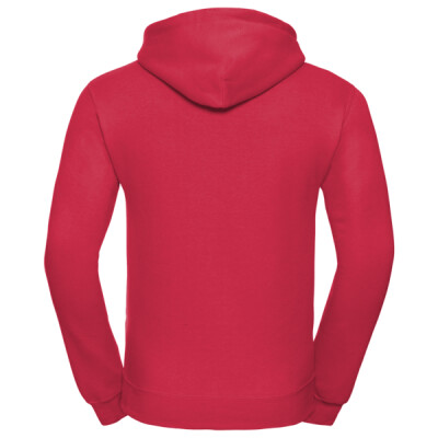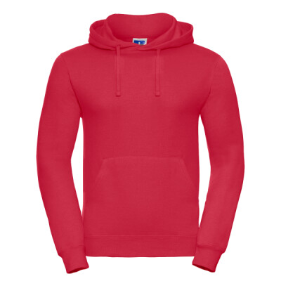 Drop shoulder. Double thickness hood with drawcord. Front pouch pocket with tubular construction for shape retention. Set in sleeves. Coverseamed shoulders, armholes and waistband. Also available in kids'.